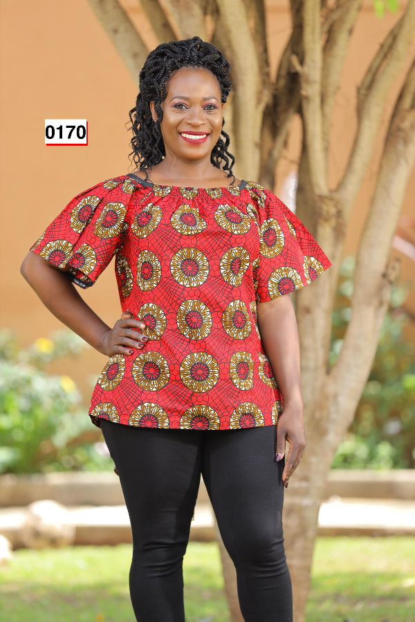 Top, African Print, Red, Brown